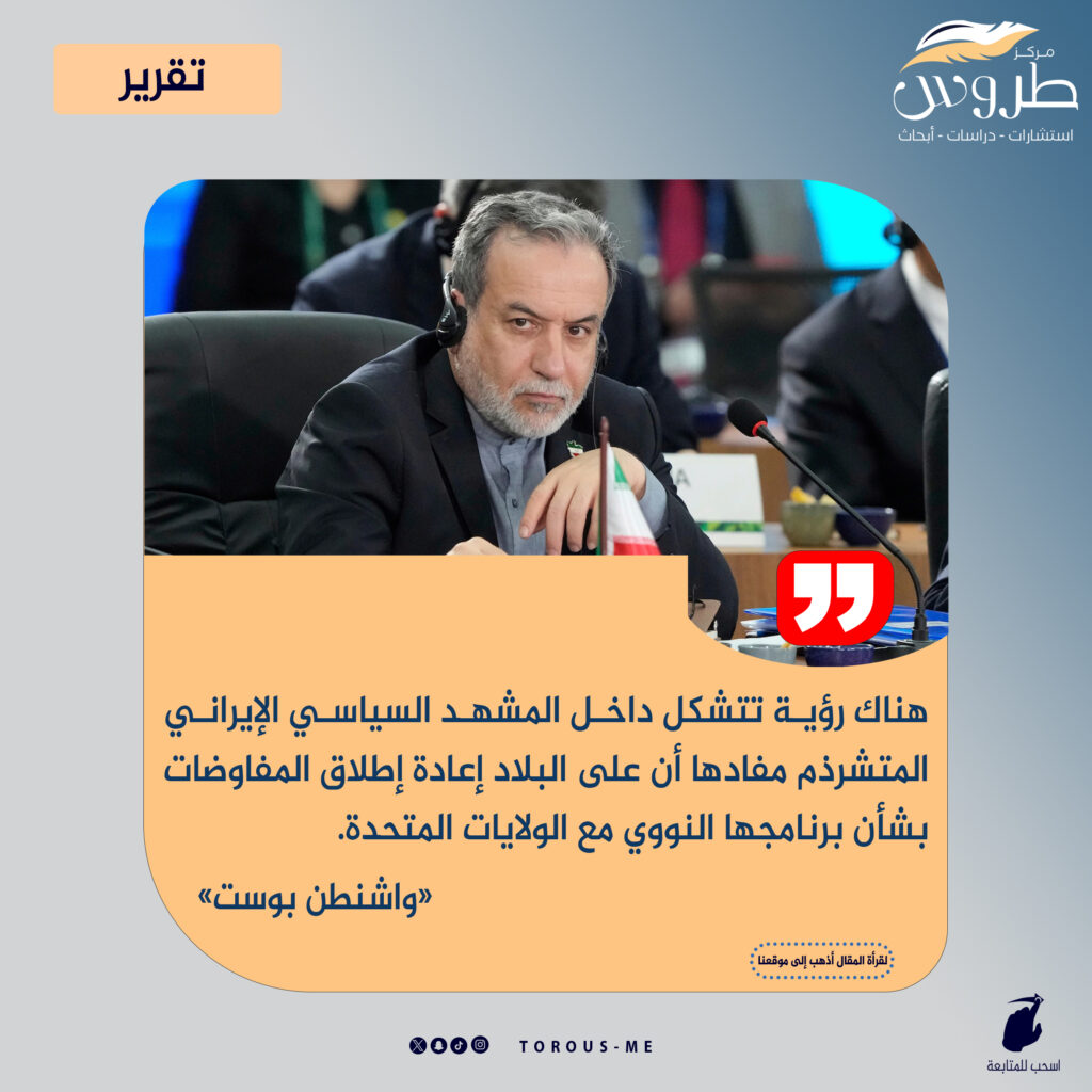 ننتقل إلى صحيفة «واشنطن بوست» وخبرها المتعلق بالشأن الإيراني تحت عنوان «إيران ترى فرصة لإبرام اتفاق نووي مع الولايات المتحدة رغم الهجمات»، وجاء فيه، «يقول محللون إن صراعاً على السلطة بين النخب الإيرانية قد يمنح الأفضلية تدريجياً لأولئك الذين يفضلون التفاوض على المواجهة. وهناك رؤية تتشكل داخل المشهد السياسي الإيراني المتشرذم مفادها أن على البلاد إعادة إطلاق المفاوضات بشأن برنامجها النووي مع الولايات المتحدة، حتى مع استمرار الشكوك حول ما إذا كانت هذه المحادثات قد تكون مجرد تمهيد لهجوم إسرائيلي جديد.