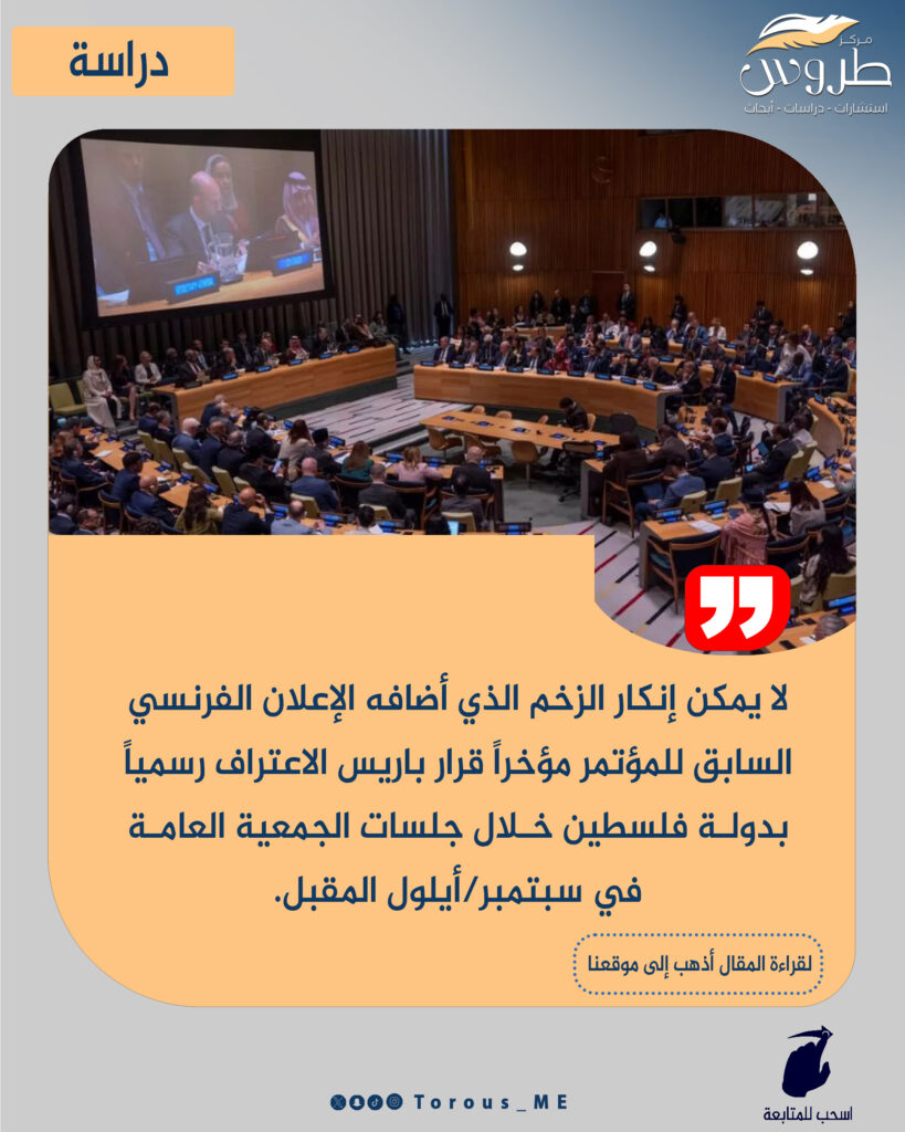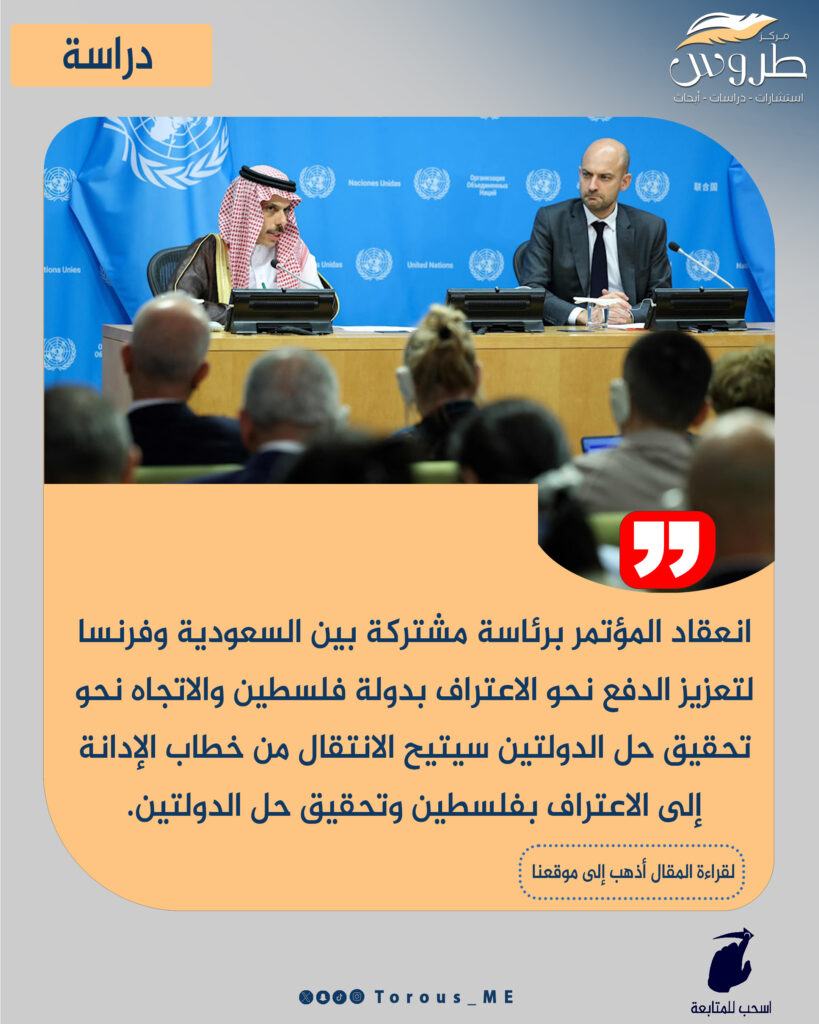 • انعقاد المؤتمر برئاسة مشتركة بين السعودية وفرنسا سيتيح الانتقال من خطاب الإدانة إلى الاعتراف بفلسطين وتحقيق حل الدولتين