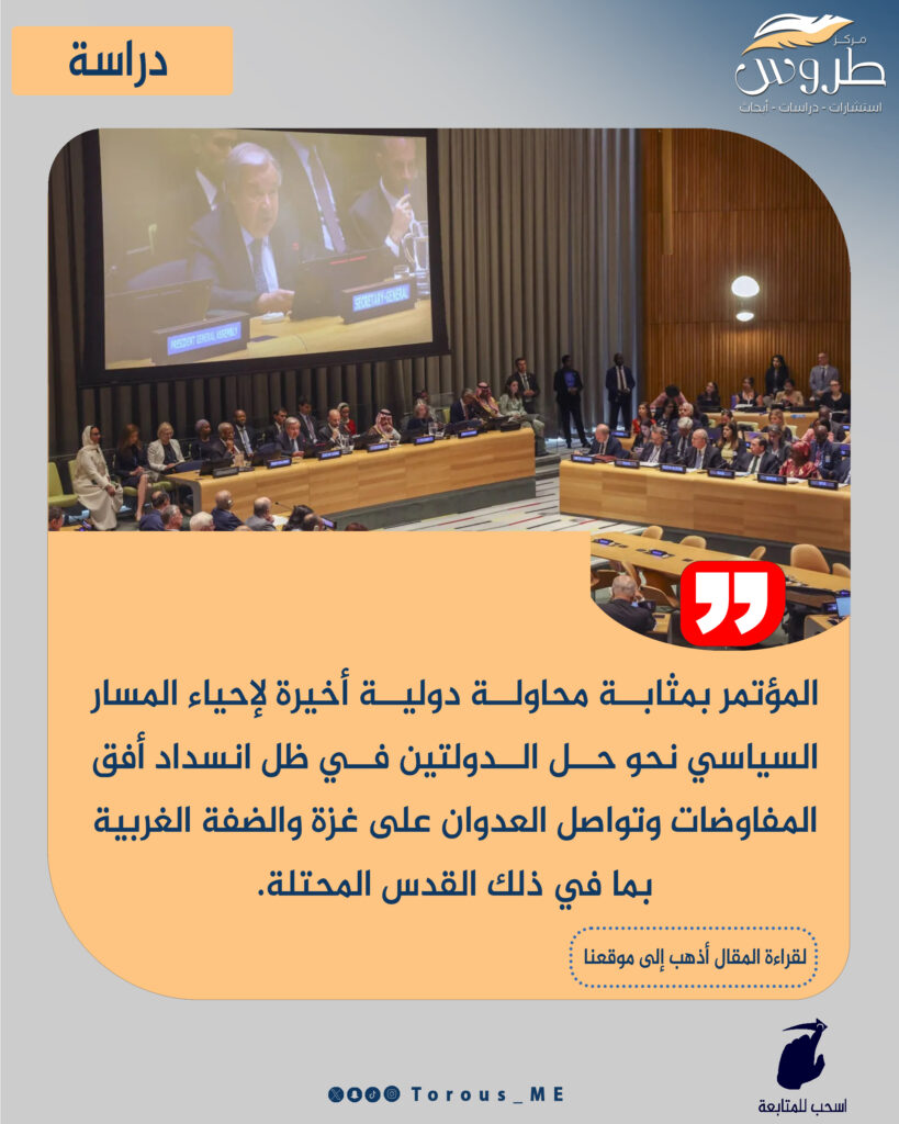 • المؤتمر بمثابة محاولة دولية أخيرة لإحياء المسار السياسي نحو حل الدولتين في ظل انسداد أفق المفاوضات وتواصل العدوان