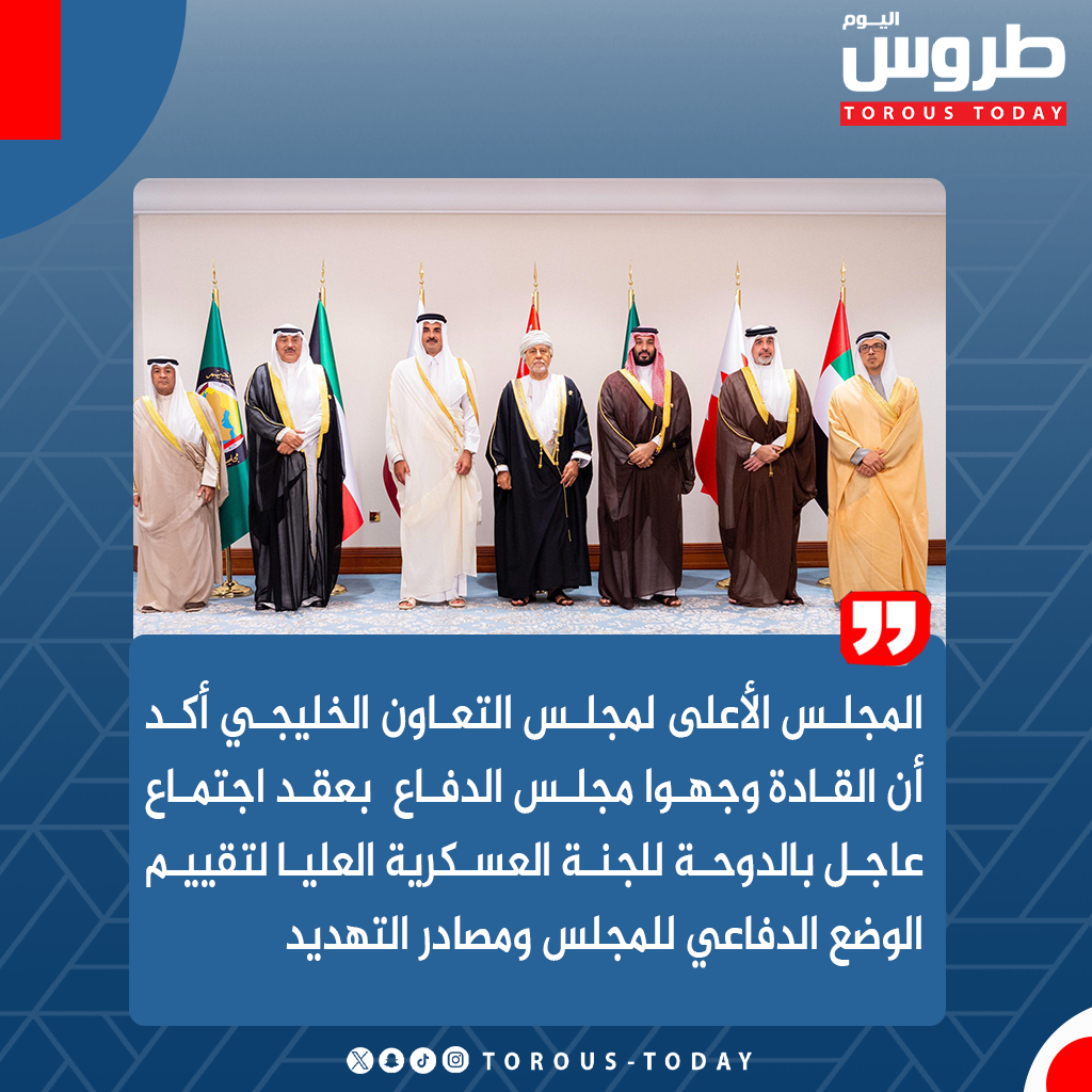 فيما عقد عقد المجلس الأعلى لمجلس التعاون لدول الخليج العربية دورة استثنائية ، في الدوحة، برئاسة أمير قطر الشيخ تميم بن حمد آل ثاني، وترأس نائب الأمير سمو ولي العهد الشيخ صباح خالد الحمد الصباح وفد دولة الكويت، بحضور ولي العهد السعودي الأمير محمد بن سلمان ونائب رئيس الامارات منصور بن زايد، وممثل ملك البحرين الشيخ عبدالله بن حمد آل خليفة، ونائب رئيس الوزراء لشؤون الدفاع في سلطنة عمان شهاب بن طارق آل سعيد، إضافة إلى جاسم محمد البديوي، الأمين العام لمجلس التعاون لدول الخليج العربية، وقد وجه القادة مجلس الدفاع المشترك في مجلس التعاون بعقد اجتماع عاجل في الدوحة، يسبقه اجتماع للجنة العسكرية العليا، لتقييم الوضع الدفاعي لدول المجلس ومصادر التهديد في ضوء العدوان الإسرائيلي على دولة قطر وتوجيه القيادة العسكرية الموحدة لاتخاذ الإجراءات التنفيذية اللازمة لتفعيل آليات الدفاع المشترك وقدرات الردع الخليجية