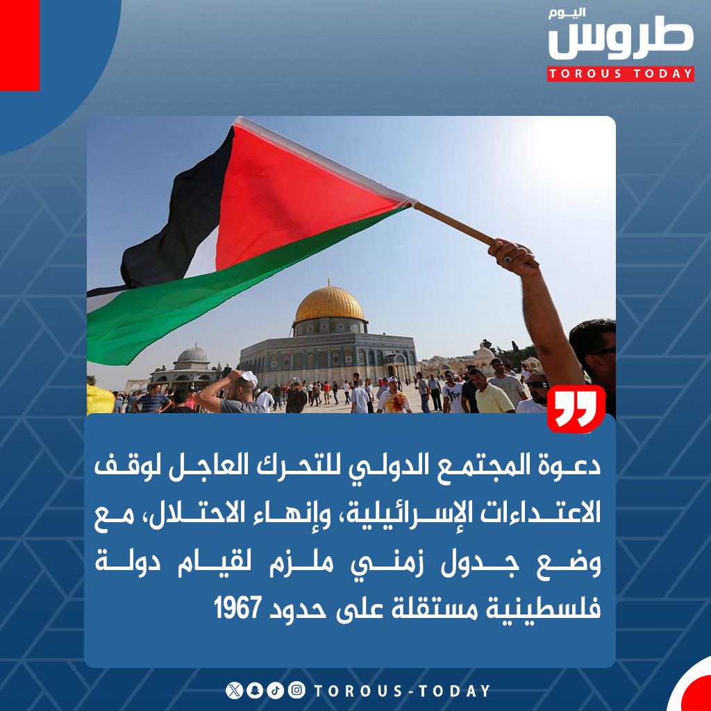 – دعوة المجتمع الدولي للتحرك العاجل لوقف الاعتداءات الإسرائيلية في المنطقة، وإنهاء الاحتلال، مع وضع جدول زمني ملزم لقيام دولة فلسطينية مستقلة على حدود 1967، بعاصمتها القدس الشرقية.