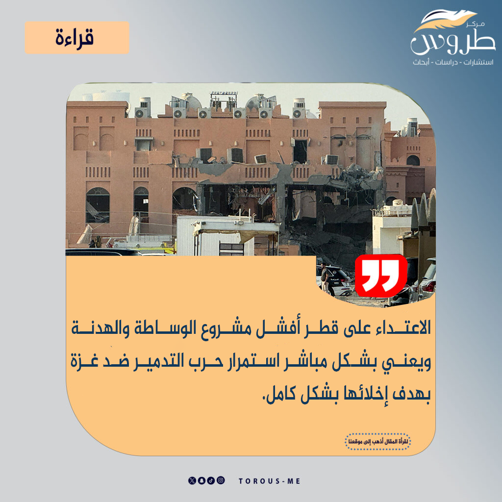 فلسطينيًا نحن أمام نتيجة مباشرة سنشهدها في غزة، الاعتداء على قطر أفشل مشروع الوساطة والهدنة ويعني بشكل مباشر استمرار حرب التدمير ضد غزة بهدف إخلائها بشكل كامل.