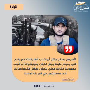 الأهم في رسائل مقتل أبو شباب أنها وقعت في رفح، بيد العشائر – وفق تقارير الإعلام – ورفح يسيطر عليها جيش الكيان سيطرة كاملة، وميليشيات أبو شباب محسوبة كشريك فعلي للكيان، ومقتل قائدها رسالة أنها هدف رئيس في المرحلة المقبلة، وأن وهم العشائر والمصادر المحلية الإسرائيلية لحكم القطاع يواجه بقوة.