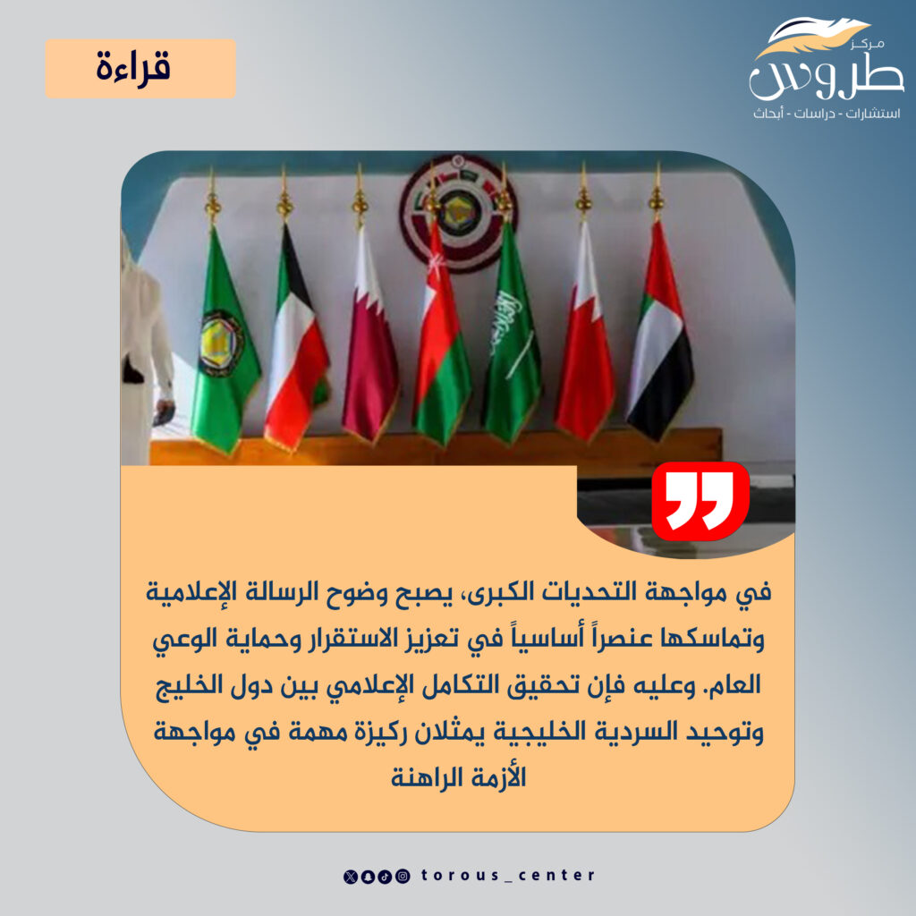 من هنا تبرز أهمية التكامل الإعلامي بين دول الخليج وتوحيد السردية الخليجية، لتتمكن من تقديم رواية متماسكة تعكس حقيقة التهديدات التي تواجه المنطقة.