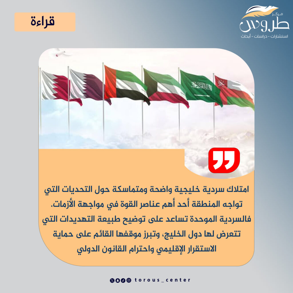 وفي هذا الجانب، يصبح توحيد السردية الخليجية تعبيراً عن إدراك مشترك بأن أمن دول الخليج مترابط، وأن الدفاع عن استقرار المنطقة مسؤولية جماعية تتطلب تنسيقاً سياسياً وإعلامياً متواصلاً.