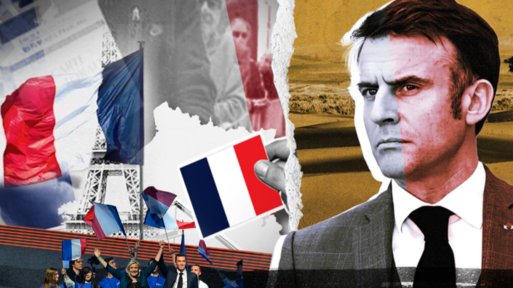 ولأول مرة في تاريخ فرنسا بعد الحرب، ربما يفوز اليمين المتطرف حسبما تظهر استطلاعات الرأي، ومن المتوقع أن يفوز ائتلاف من تيار اليسار بثاني أكبر عدد من المقاعد، وأن يحل ثالثا ائتلاف ينتمي للوسط بقيادة الرئيس إيمانويل ماكرون.