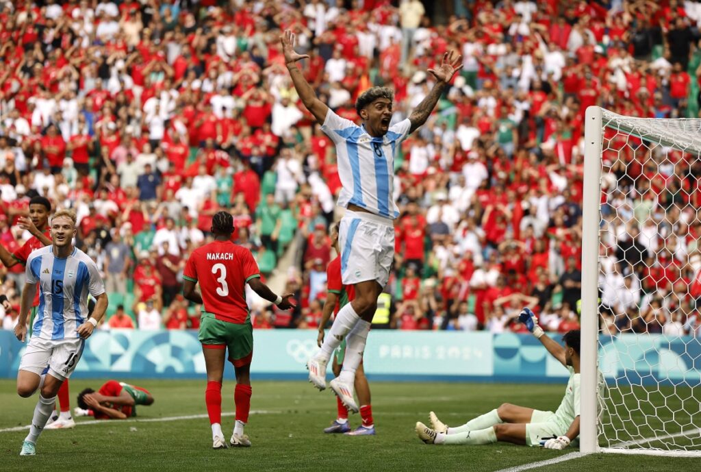 خطف منتخب الأرجنتين تعادلاً مثيرا أمام نظيره المغربي بنتيجة 2-2 اليوم الأربعاء، في افتتاح مشوار الفريقين بالمجموعة الثانية لمنافسات كرة القدم في أولمبياد باريس 2024.
